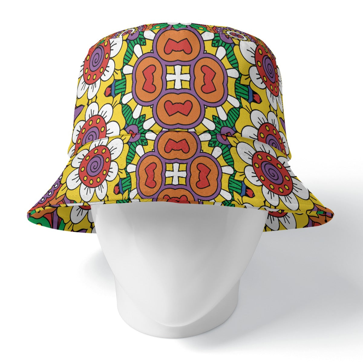 Psychedelic blooms spiral across your crown, hand-drawn flowers exploding in sacred mandala formations that mirror nature's ecstatic geometry. This reversible bucket hat carries the frequency of eternal spring... one side opens, the other side receives, both sides channel growth and beauty.