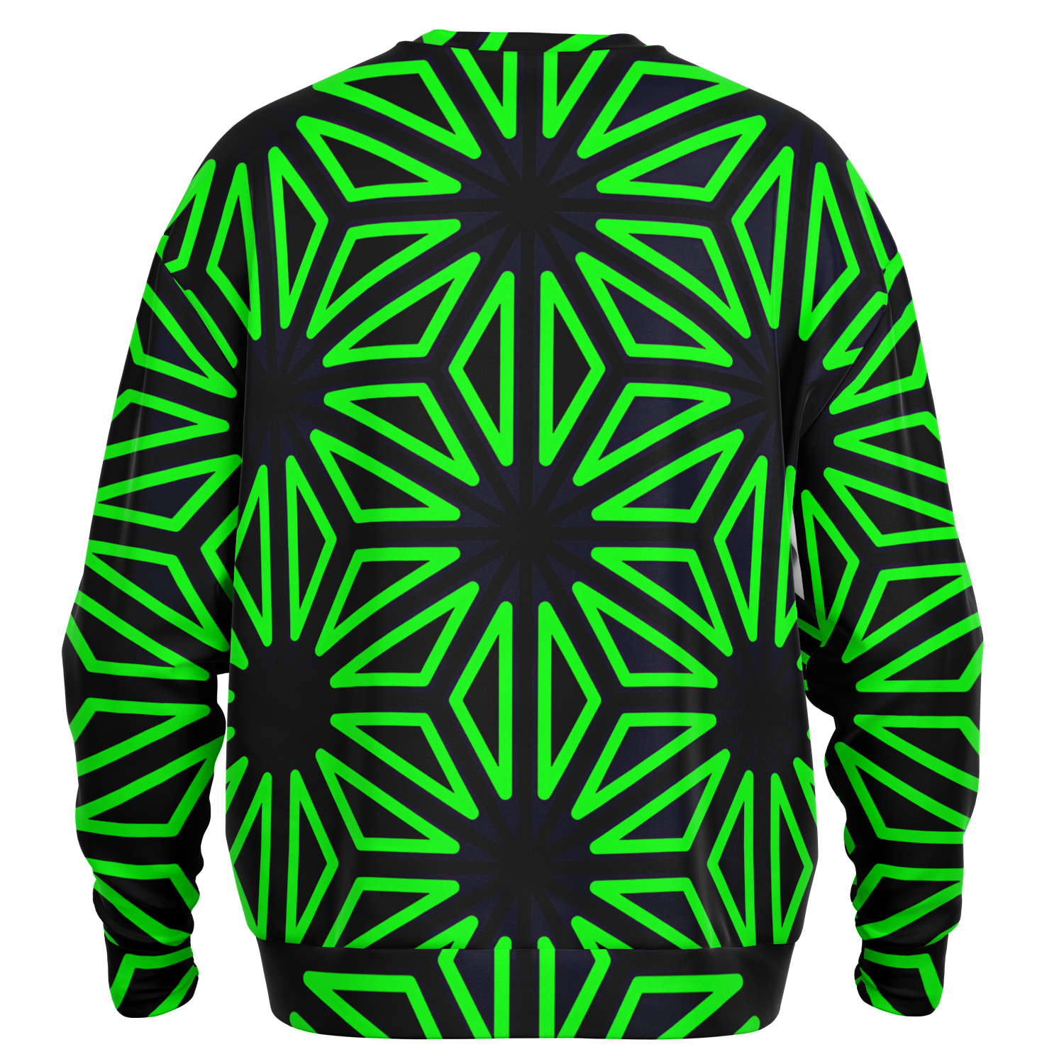 We created the Electric Eden pattern because we love the energy found in geometric art. It's a design that feels both natural and futuristic, and we wanted to put it on a piece of clothing that you'd actually want to live in.